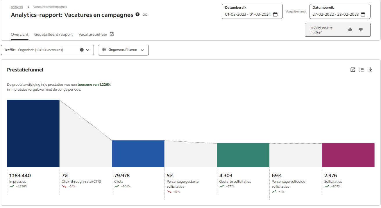 Hier ziet u de resultaten van een 2023 waar wij intensief zochten naar kandidaten in de de technische sector. Dit heeft gezorgd voor 2976 sollicitaties waar wij de allerbeste kandidaten uit hebben kunnen selecteren.